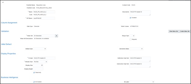 POR_REQUISITION_LINES DFF Setup Details