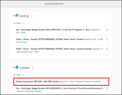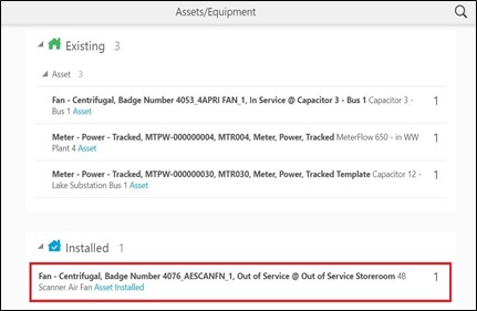 The new asset installed is shown in the Installed pool.