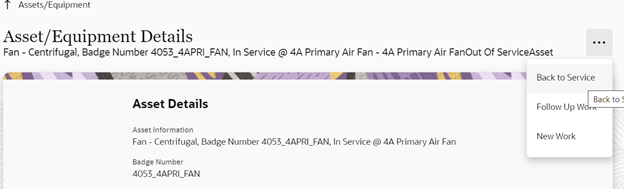 Moving Assets Back to Service