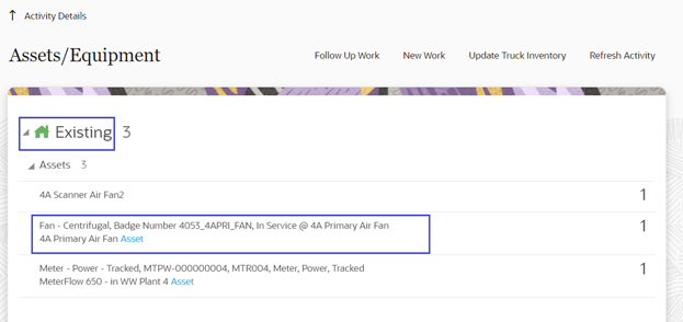 1. Click Asset in Out of Service.