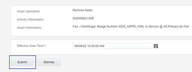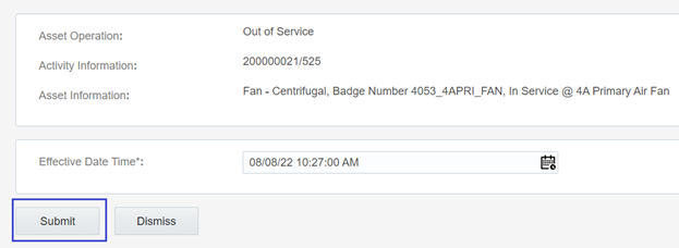 4. Enter the Effective Date/Time and click Submit.