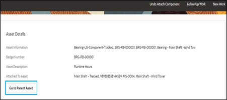 2. Click Go to Parent Asset and proceed to the parent asset to which the component is attached.