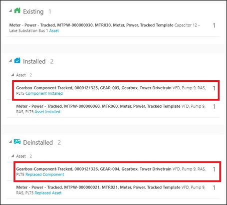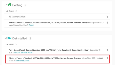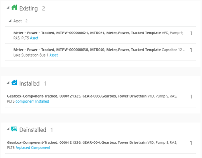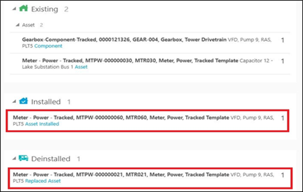 The new asset moves to the Installed pool and the replaced asset moves to the Deinstalled pool.