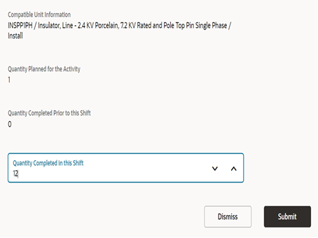 Field worker can update any extra quantity of equipment that is required apart from the planned quantity and quantity completed is divided into two fields Quantity Completed prior to this shift (sum of previous segments quantity for multiday activities and 0 for normal activity) and Quantity completed in this shift.