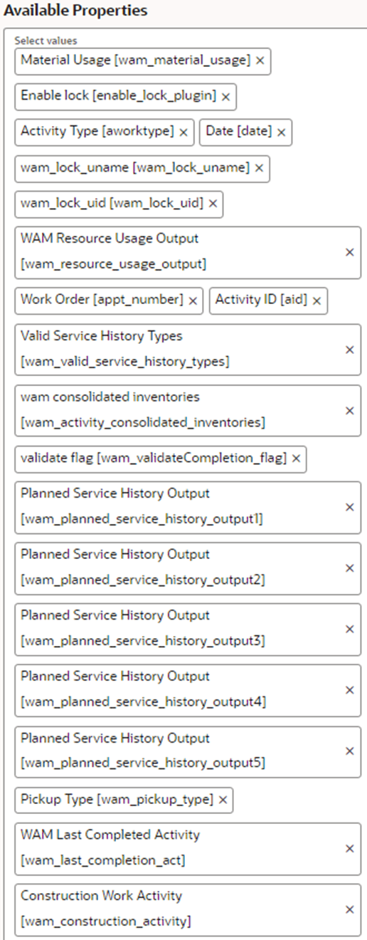 This plugin displays the asset attribute list of an asset in Oracle Field Service. The asset can be in existing, installed or de-installed pool. Asset attributes are characteristic that are recorded for an asset. Only characteristic types with an adhoc and predefined value can be used as asset attributes. Each asset type records which characteristic types can be used for asset attributes for assets of that types.