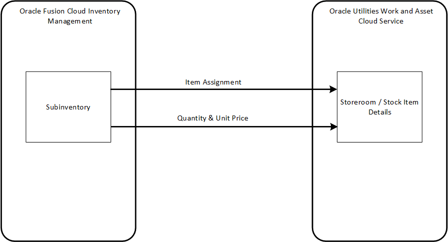 On-hand quantity and average unit price for an item in Oracle Fusion ERP Cloud sub inventory will be synchronized to Item Quantity in Oracle Utilities Work and Asset Cloud Service storeroom.