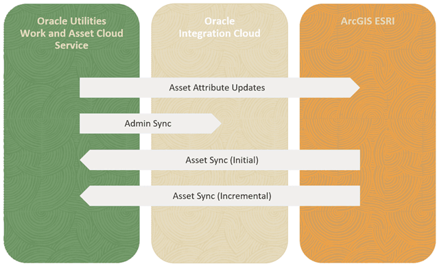 • Incremental synchronization from ESRI ArcGIS to Oracle Utilities Work and Asset Cloud Service for assets that have been added, updated, and deleted.