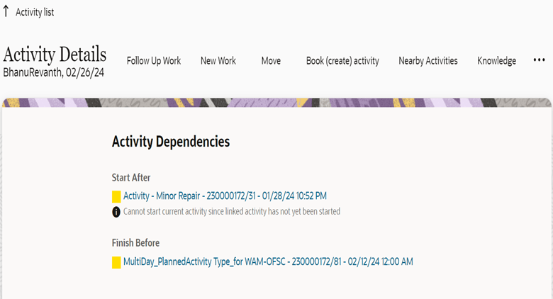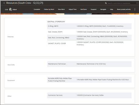 Crew can view information about an activity, including resources required for the activity and assets to be serviced.