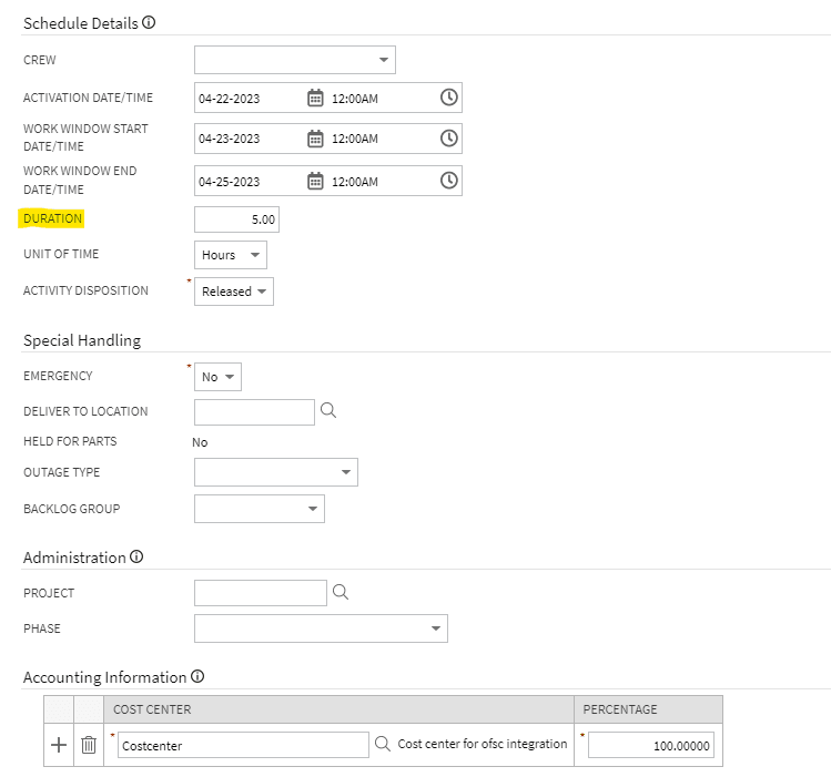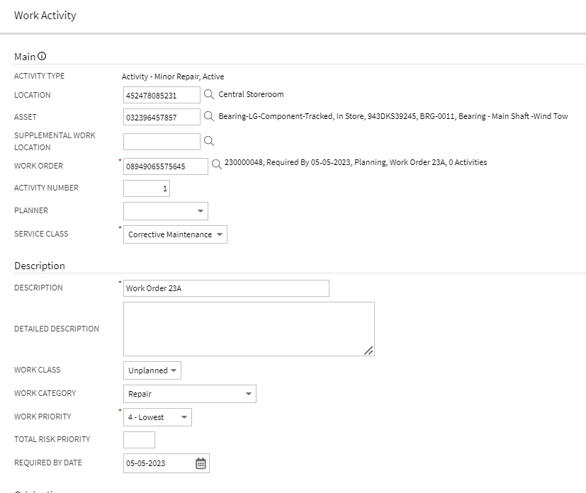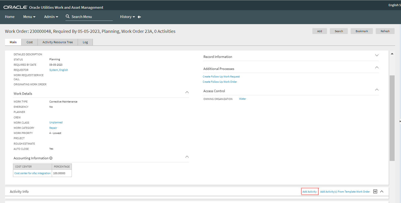 1. Login to Oracle Utilities Work and Asset Cloud Service and go to the Work Order details screen.