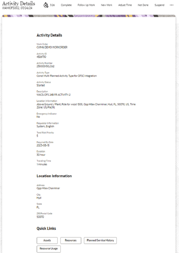 Crew can view information about an activity, including resources required for the activity and assets to be serviced.