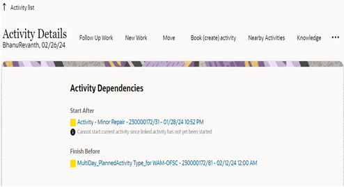 If any activity has dependencies, the information related to it gets displayed in Activity Dependencies section. Only warning message is displayed in Activity Dependencies section.