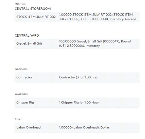 To view resources, navigate to the Activity Details page and click Resources. Resources include planned materials, work skills, equipment and other resources defined by activity planner.