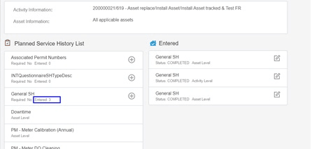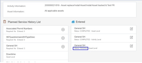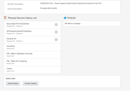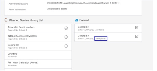 If Activity is selected while adding the service histories, they will be added at activity level and displayed in the Entered section with an indication Activity Level.