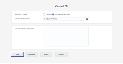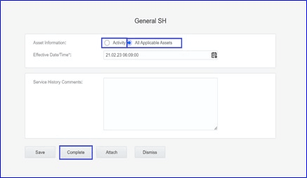 Users have an option to add service histories at Activity Level or at All Applicable Assets, if the service histories are not asset specific.