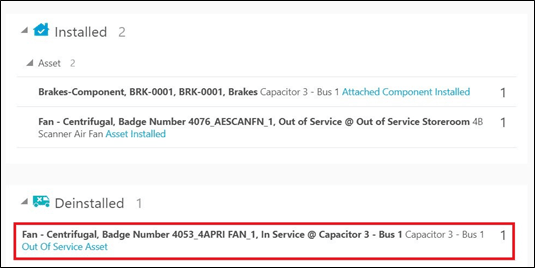 The new asset moves to the Installed pool and the replaced asset moves to the