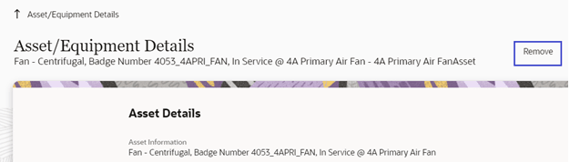 1. Start the activity. Select the asset to be removed and click Remove.