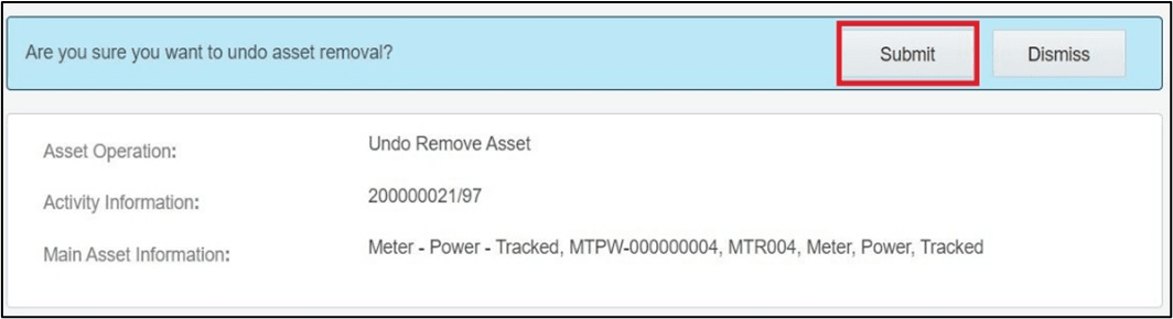 To undo an asset removal: