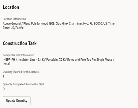 Update Quantity in Construction Work Activity
