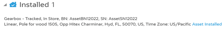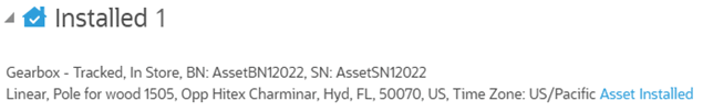 The new asset installed is shown in the Installed pool.