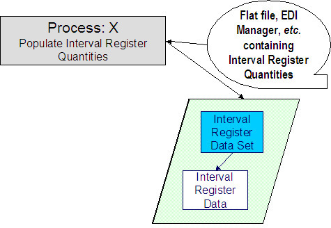 The following diagram illustrates the processes involved in the uploading of interval register data into the system.