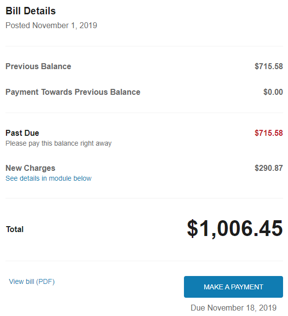 Bill download links can be made available near the bottom of the breakdown of new charges.