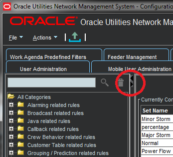 When an individual rule is displayed in the list, a symbol appears to the left of the rule. The bullet () symbol indicates that the rule is already configured in at least one rule set. The red circle with an X () symbol indicates that the rule is not presently configured in any rule set.