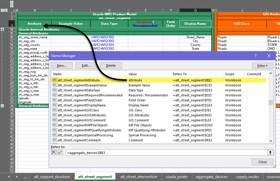 An example of these workbooks is included in the Oracle Utilities Network Management System Oracle Power and Light example model and configuration included with every release package. You can find these two workbooks in the $NMS_BASE/OPAL/workbooks directory of the Oracle Utilities Network Management System system.