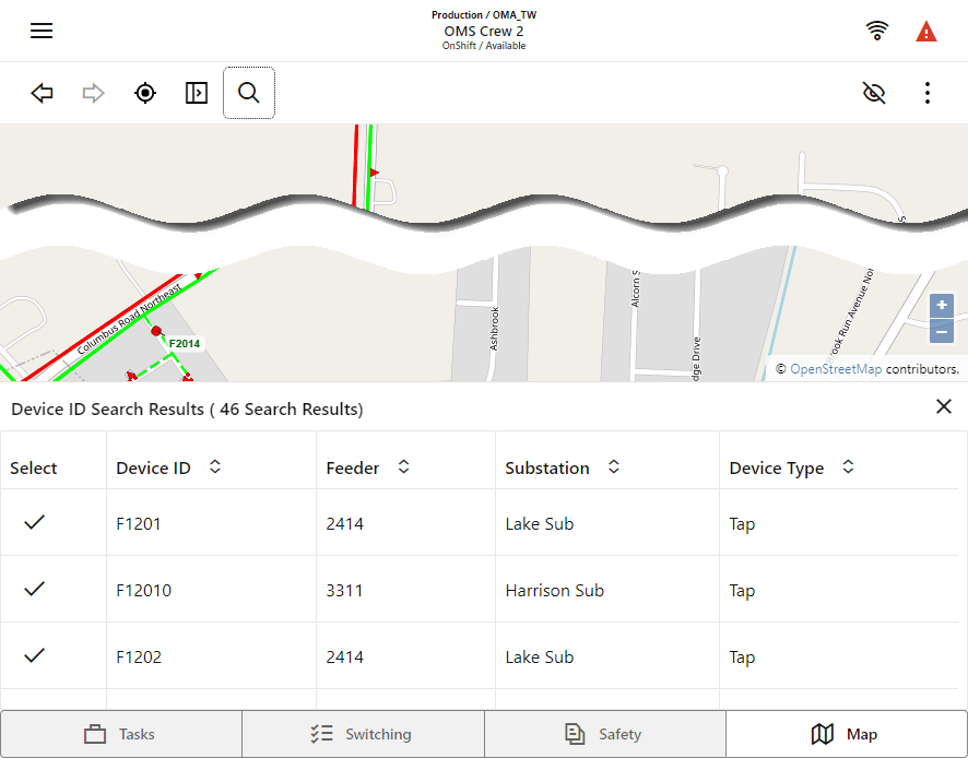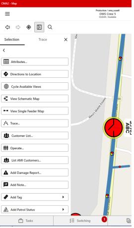The Map enables you to view and interact with a real-time view of the electrical network. It provides additional situational awareness as you record device operations, confirm switching steps, work with damage assessments, and so forth.