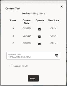 • Device Nominal Phase Labels: Toggles the visibility of devices' nominal phase(s). If a device is in an abnormal state the background of the label is colored green (abnormally open) or red (abnormally closed).