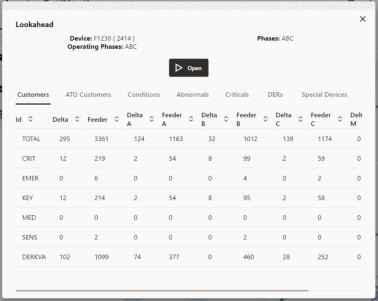 • A Real Outage icon (), when tapped, will confirm the probable outage as a real outage and will open the device in the model.