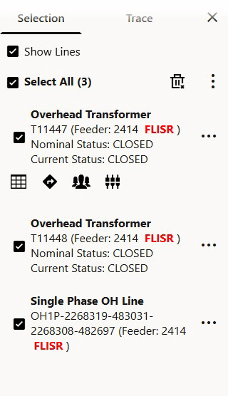 • Show Lines: When selected, selected conductors are displayed in the list of objects as well as devices and other assets
