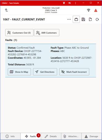 • Get directions to the fault location, using the device’s native navigation app to assist you in driving to the fault location.