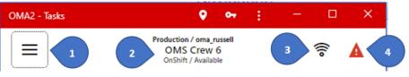 2. The OMA user and Crew status – This section will inform the OMA user of the NMS server they are connected to, their user name they logged in with, the crew they are associated with and the crew status and availability.