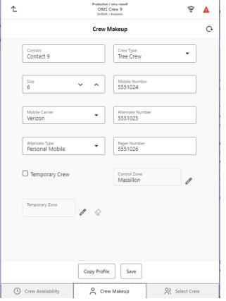 The Crew Makeup tab allows you to update the details about the crew they are associated with: