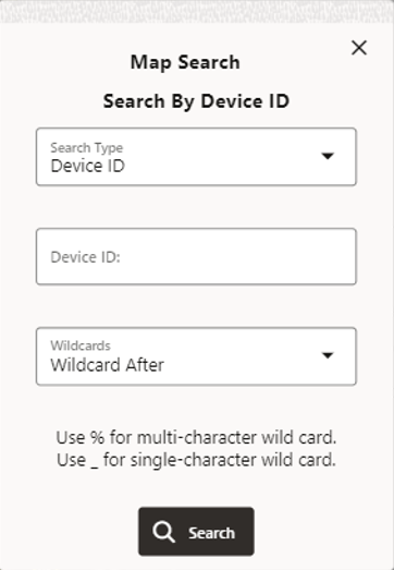 You may use a wild card search when you aren't exactly sure of the value to search on. For example, in the NMS OPAL model, searching for F12% with Wildcard After selected, will return a Device ID Search Resultspanel with multiple potential matches.