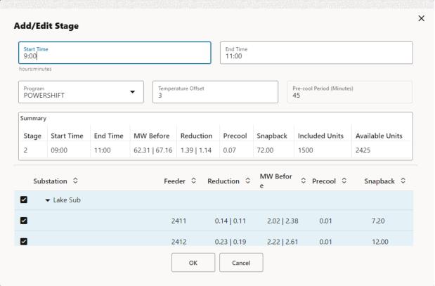 • The Add/Edit Stage dialog box allows you to change the start or end time of the stage, and to choose which zones to use in the stage.