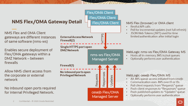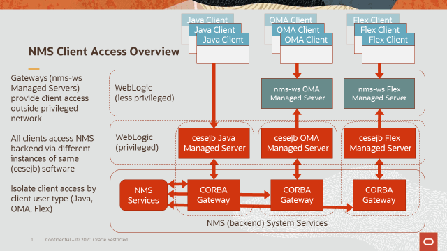 a. Technically Java, OMA and Flex clients can all be supported via a single WebLogic Managed Server – and this is often done for non-production NMS instances.