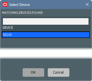 • The OK button is enabled when a device in the list is selected. Selecting OK closes the dialog and populates the Device field with the selected device.