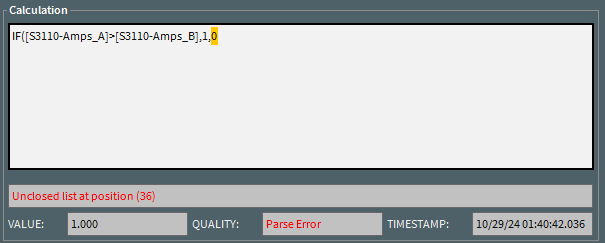 • The calculation containing a missing dependency, measurement S3111-Amps_X does not exist and is a typo for S3111-Amps_B