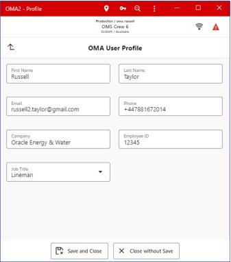 A completed profile is required for all OMA users and will automatically pop up when you log in for the first time. You are required to populate the entire profile in order to continue to use OMA: