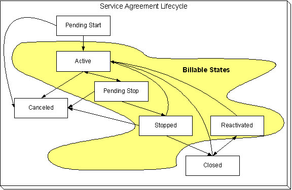 Active The system automatically changes the state of Pending Start service agreements to Active when everything necessary to start service exists in the system. Refer to