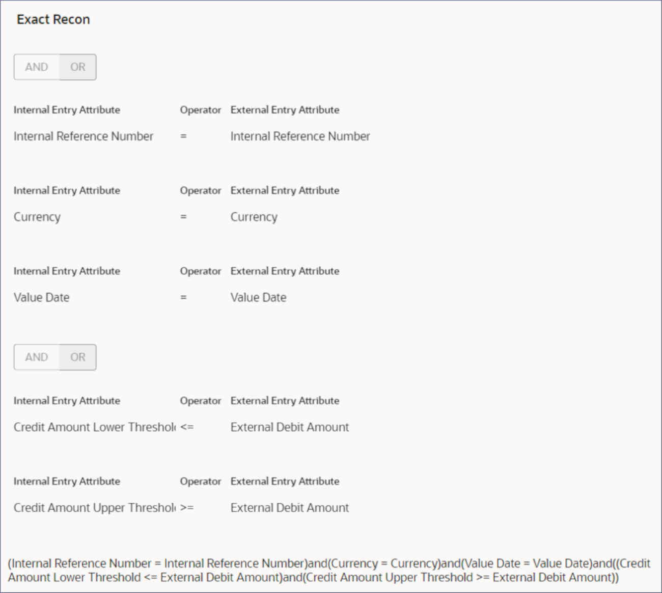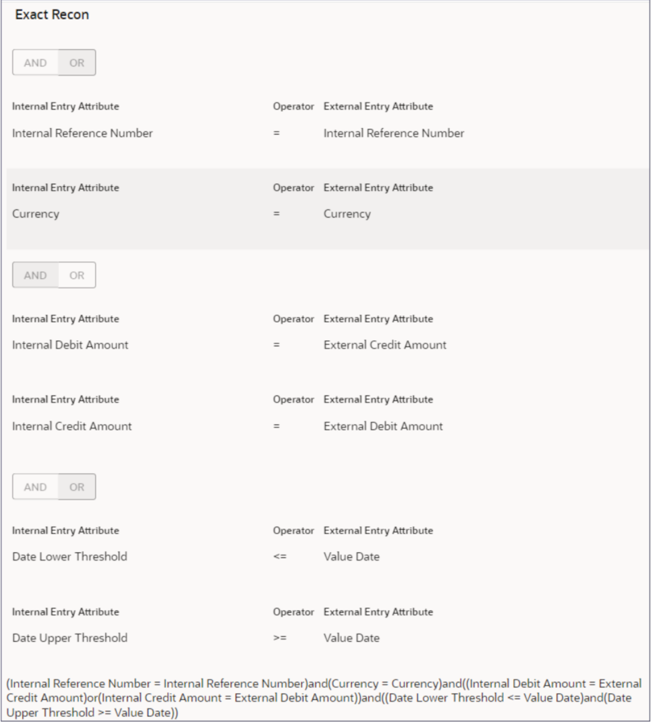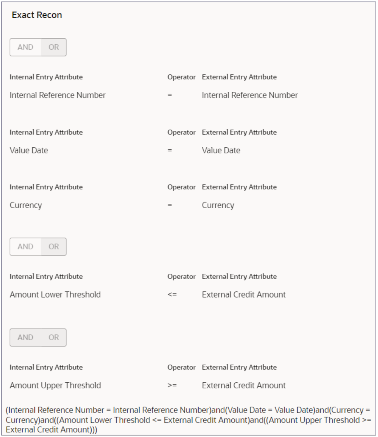 Threshold >= External Debit Amount)))Parent topic: Nostro Reconciliation Overview