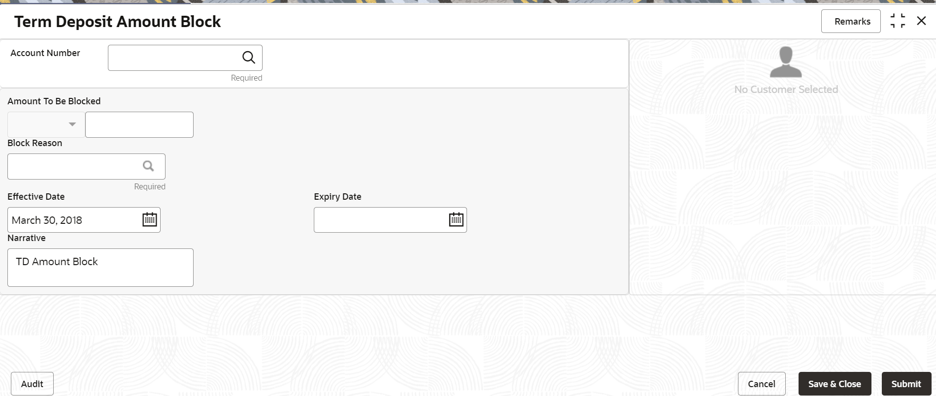- Term Deposit Amount Block