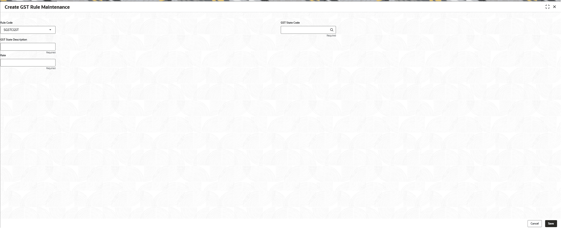 - On the Create GST Rule Maintenance screen, specify the fields. For more information on fields, refer to the field description