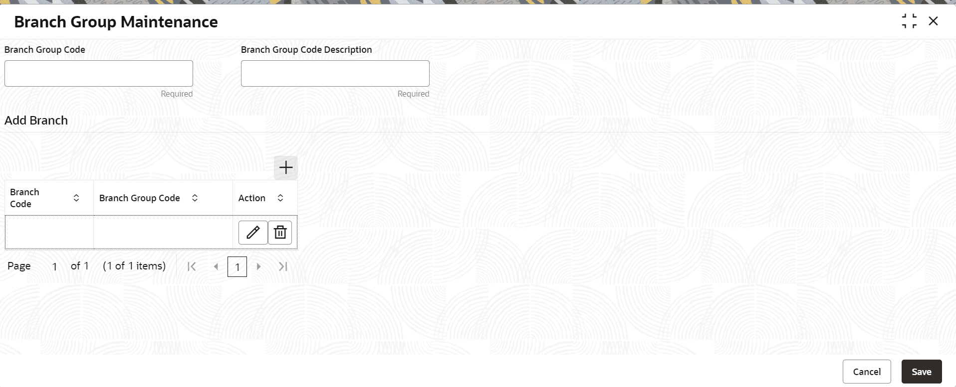 - On the Branch Group Maintenance screen, specify the