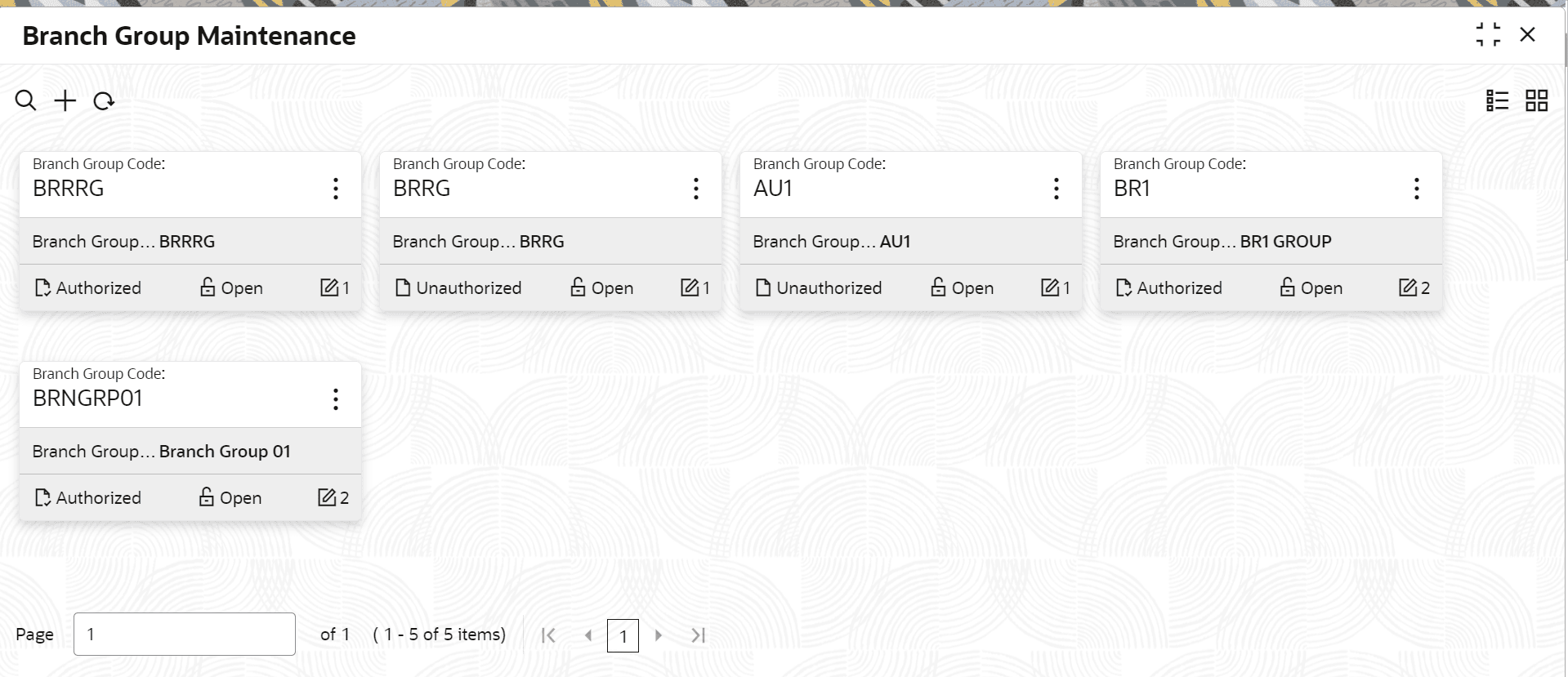 Maintenance in the search icon bar and select the screen.The Branch Group Maintenance summary screen is displayed.