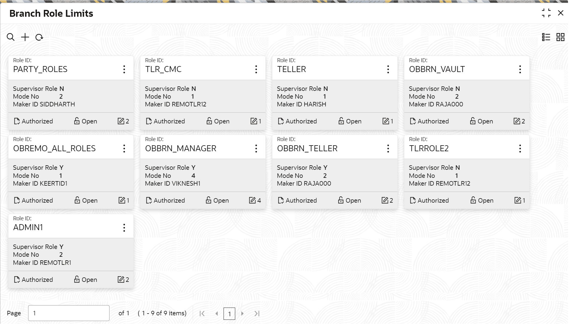 icon.The Branch Role Limits Maintenance screen is displayed.Figure 19-4 Branch Role Limits Maintenance