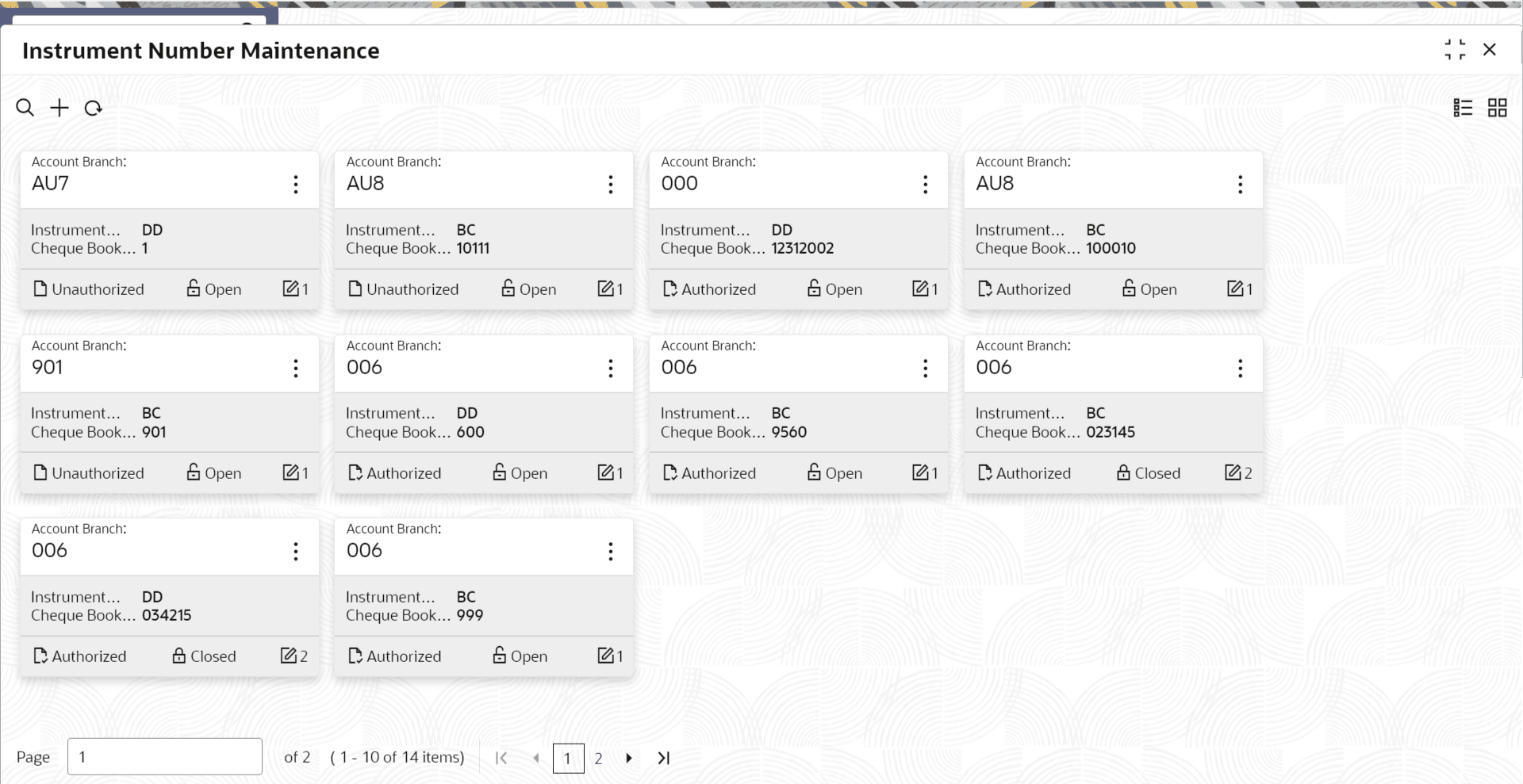 Maintenance in the search icon bar and select the screen.The Instrument Number Maintenance summary screen is displayed.
