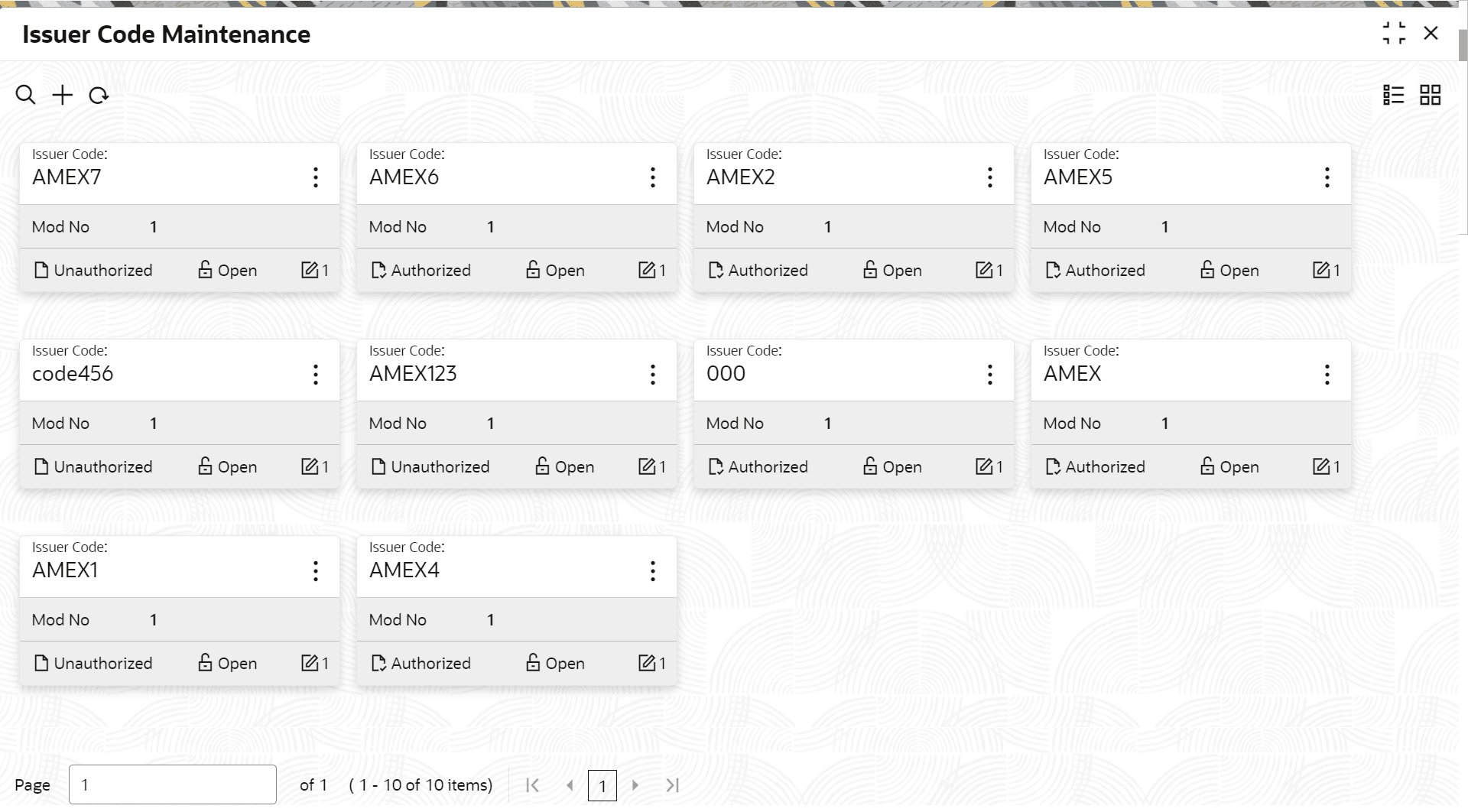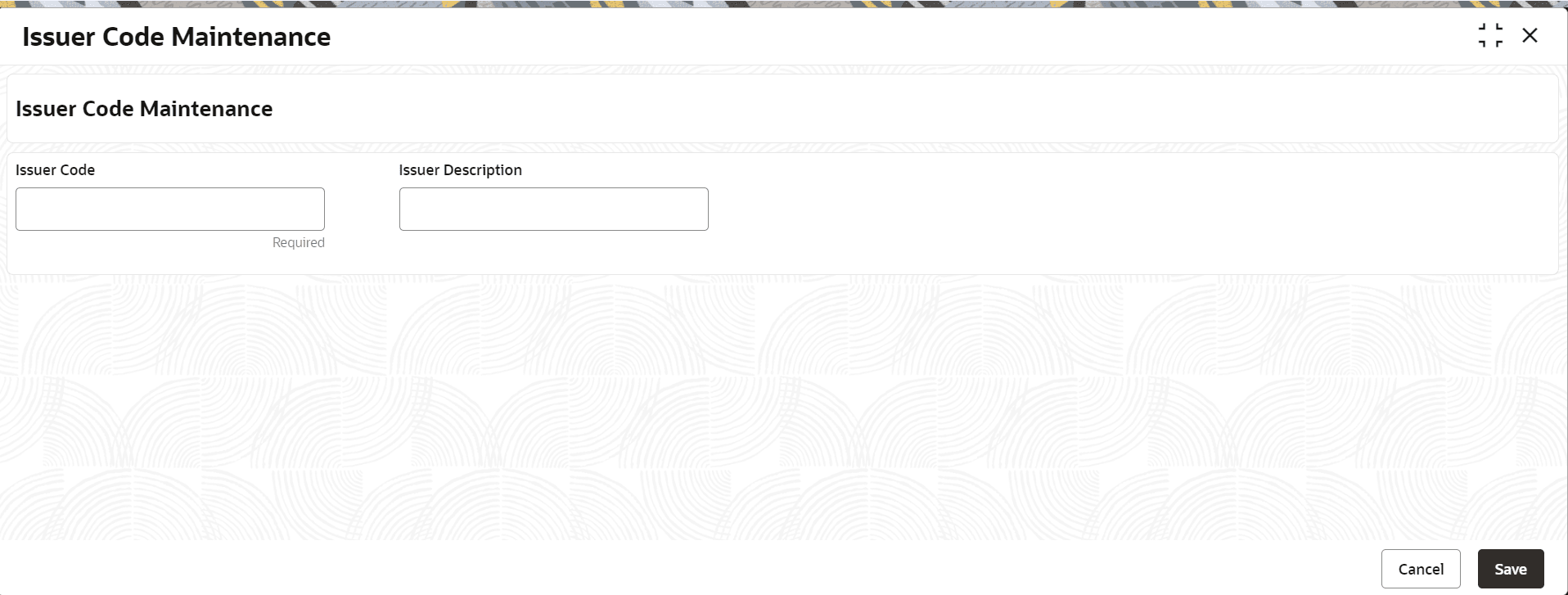 The Issuer Code Maintenance screen is used to maintain the issuer codes for TC transactions.