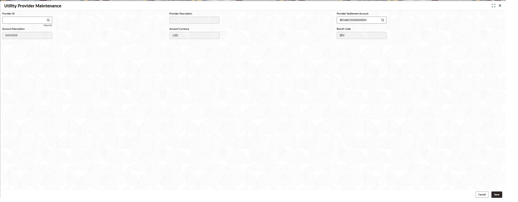The Utility Provider Maintenance screen is used to link the utility provider with a settlement account.